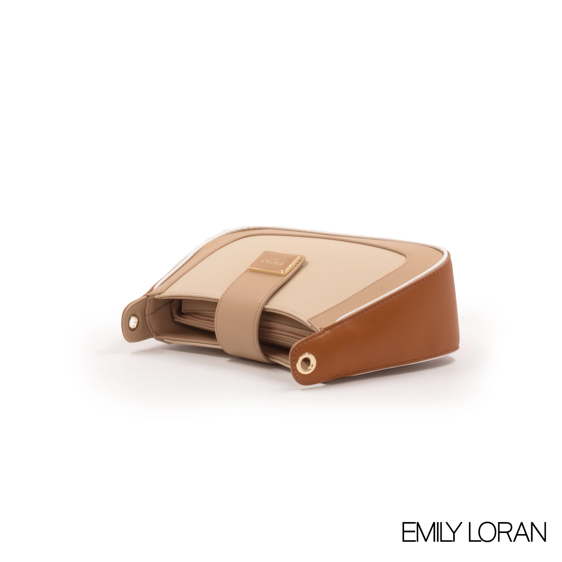 BEIGE EMILY LORAN HANDBAG WITH LEATHER BROWN TRIM COLOR-SMALL