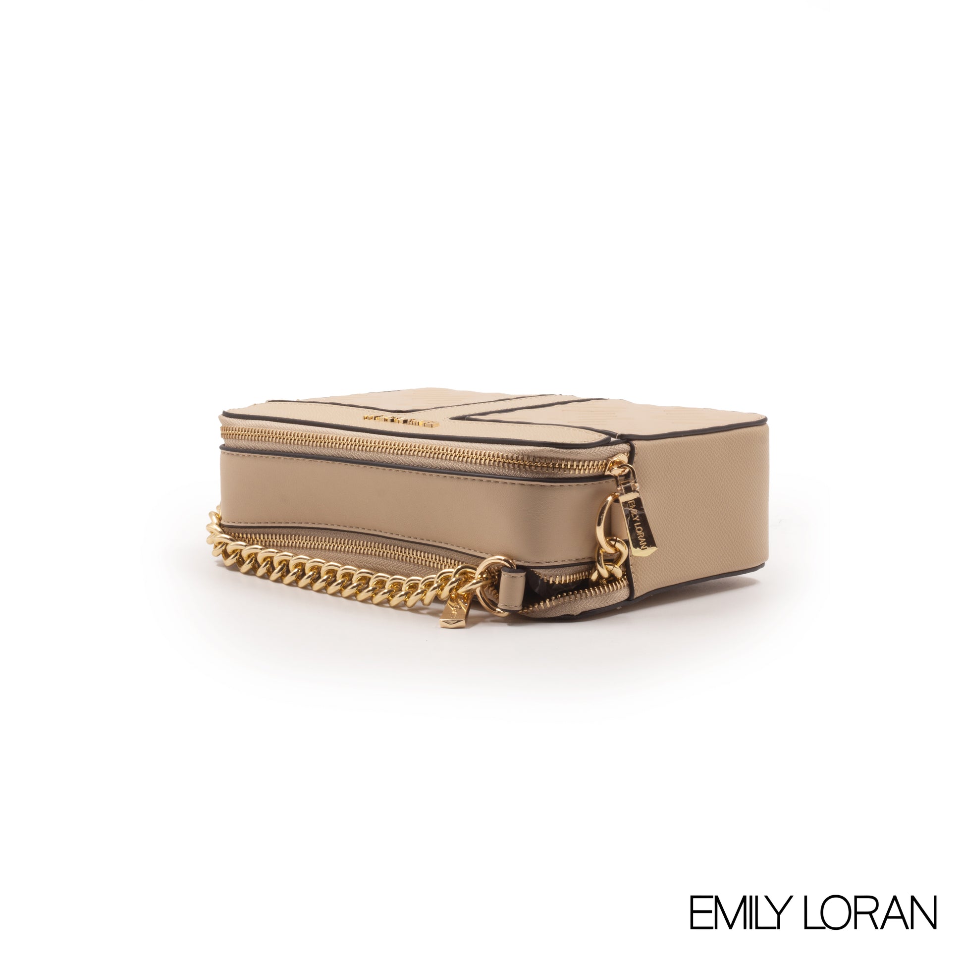 BEIGE LEATHER EMBOSSED CROSSBODY BAG -SMALL