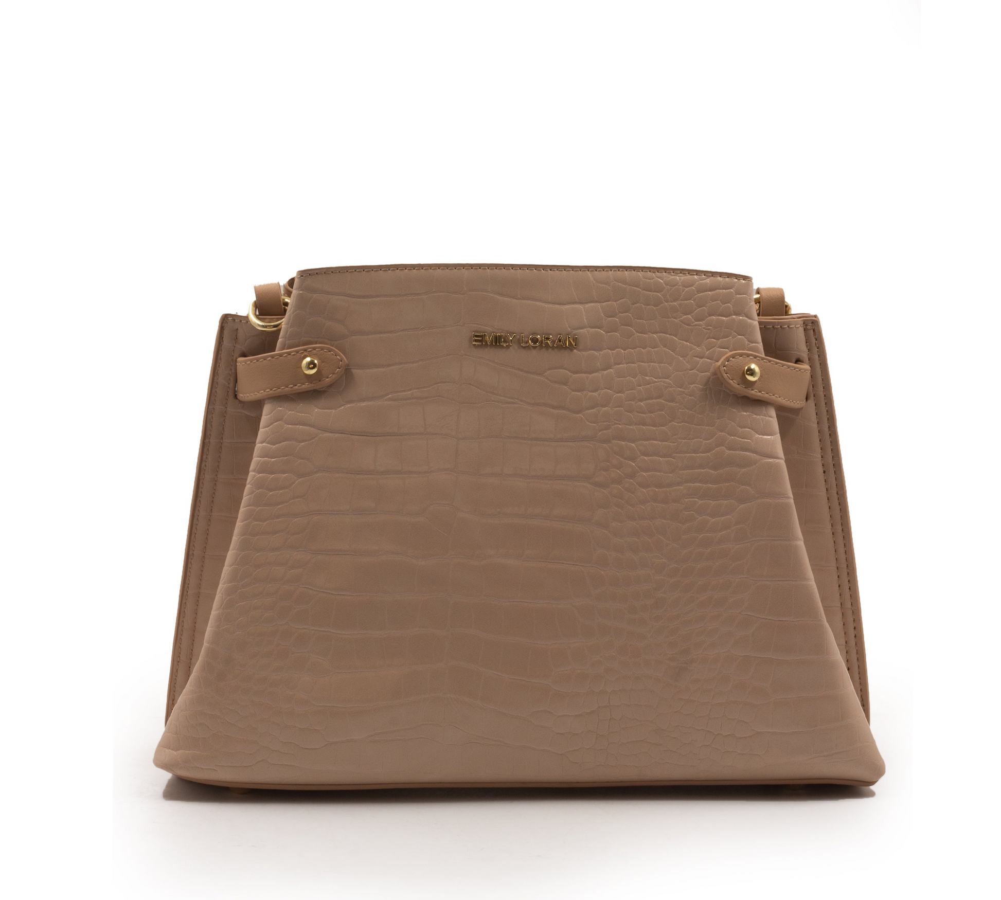 BEIGE LEATHER HANDBAG WITH CROC DETAILS TOUCH -MED