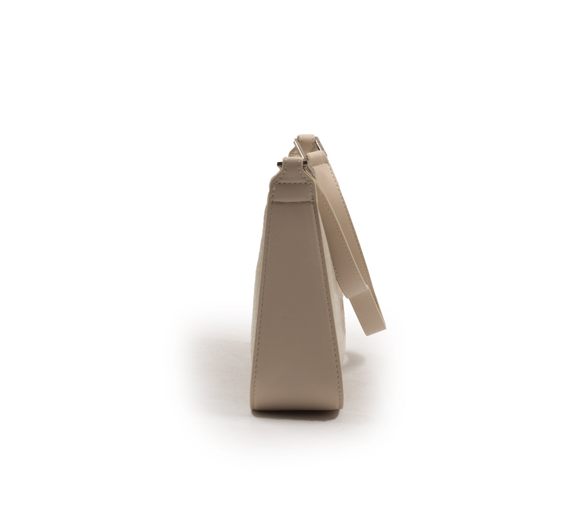BEIGE LEATHER HANDBAG WITH SMOOTH CROC DETAILS-SMALL