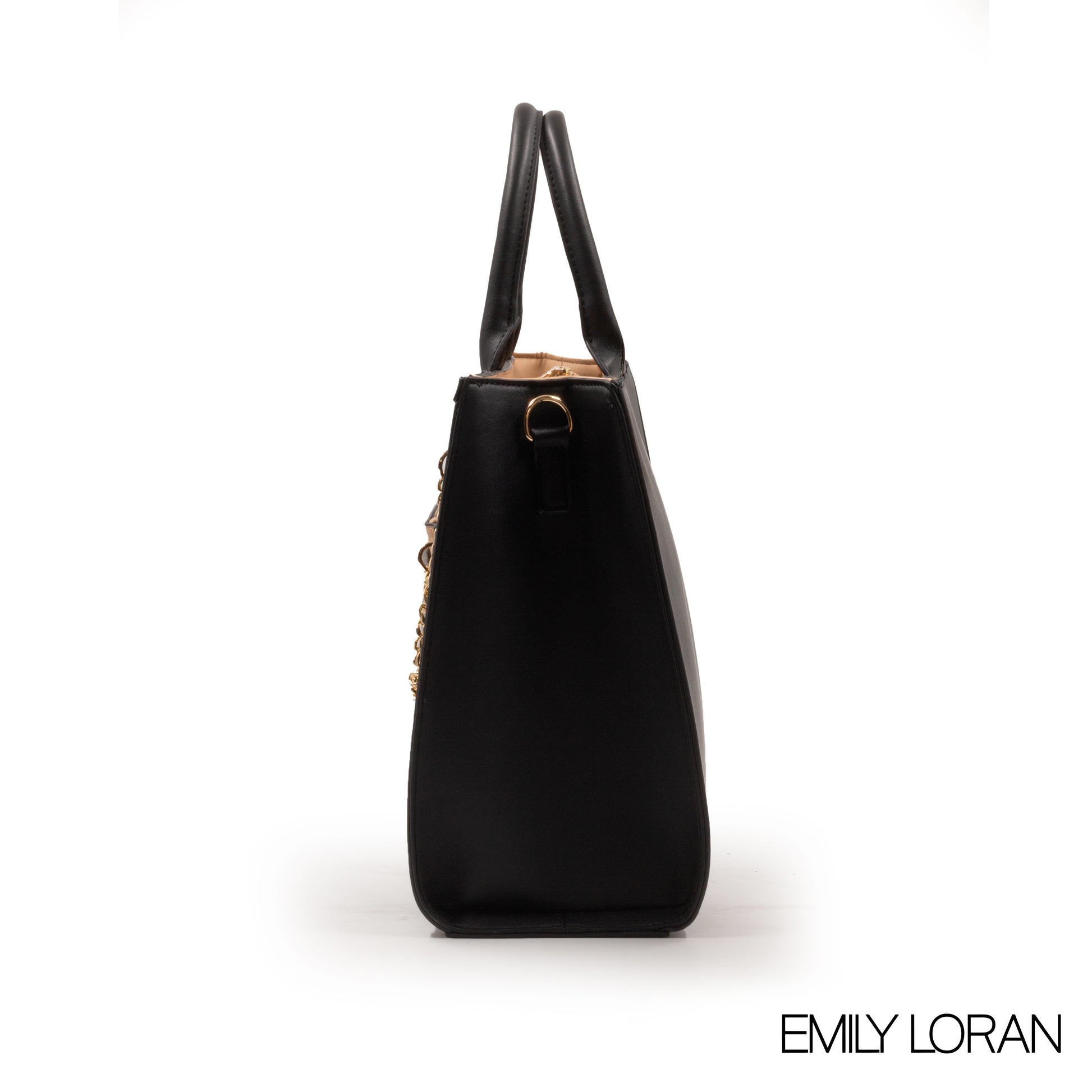 BLACK LEATHER EMILY LORAN HANDBAG WITH METAL CHAIN-LARGE