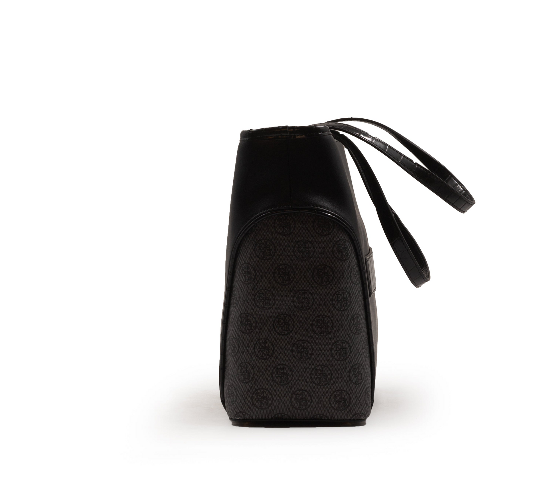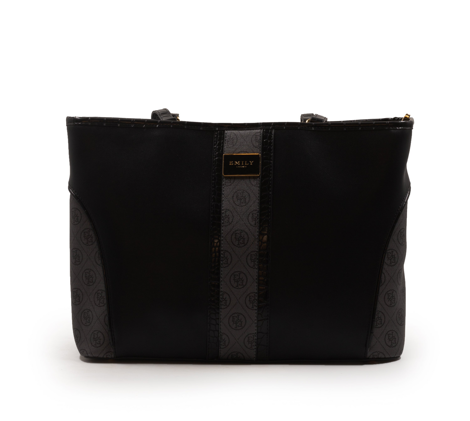 BLACK LEATHER EMILY LORAN WITH PATTERNED TRIM-LARGE