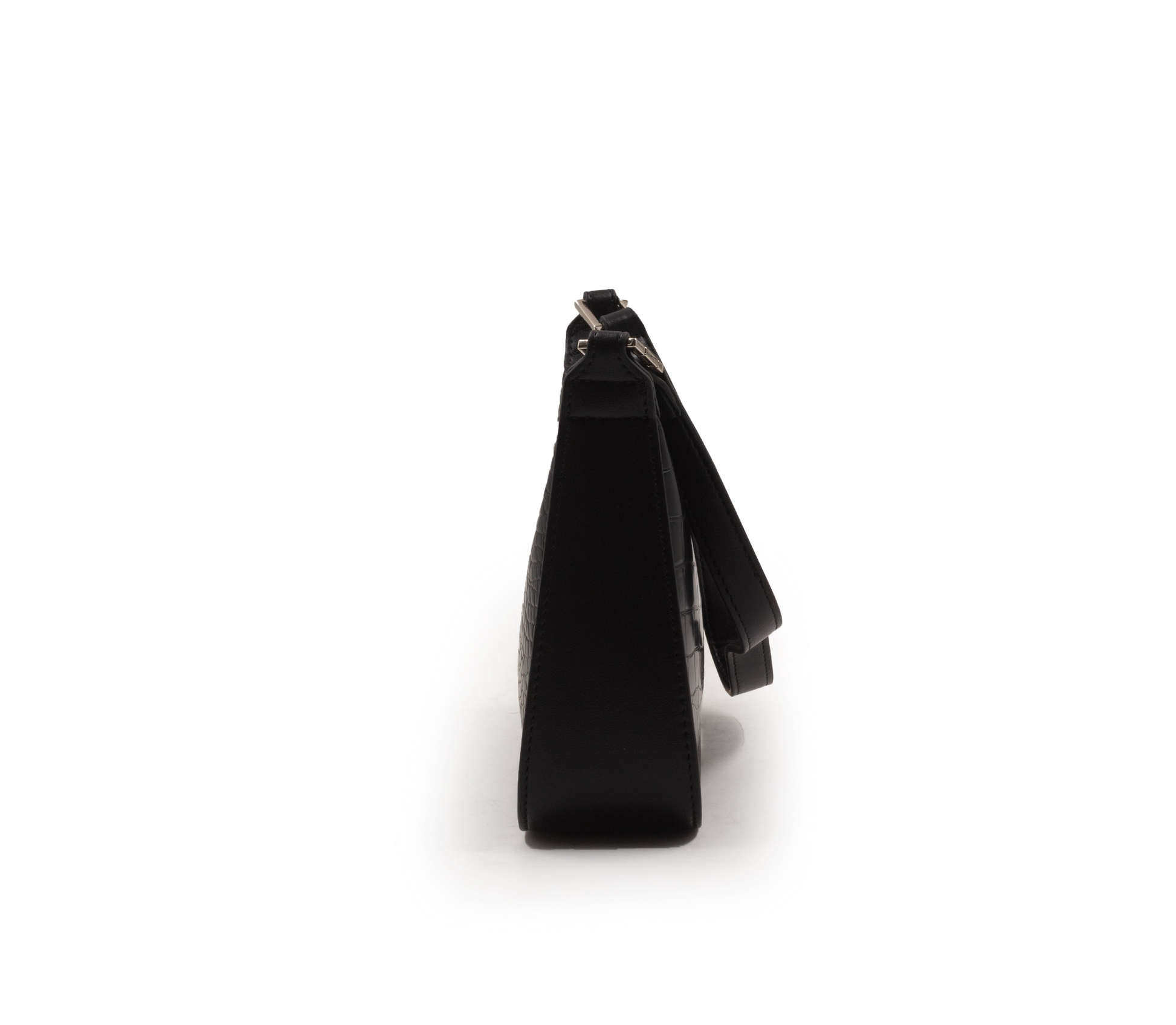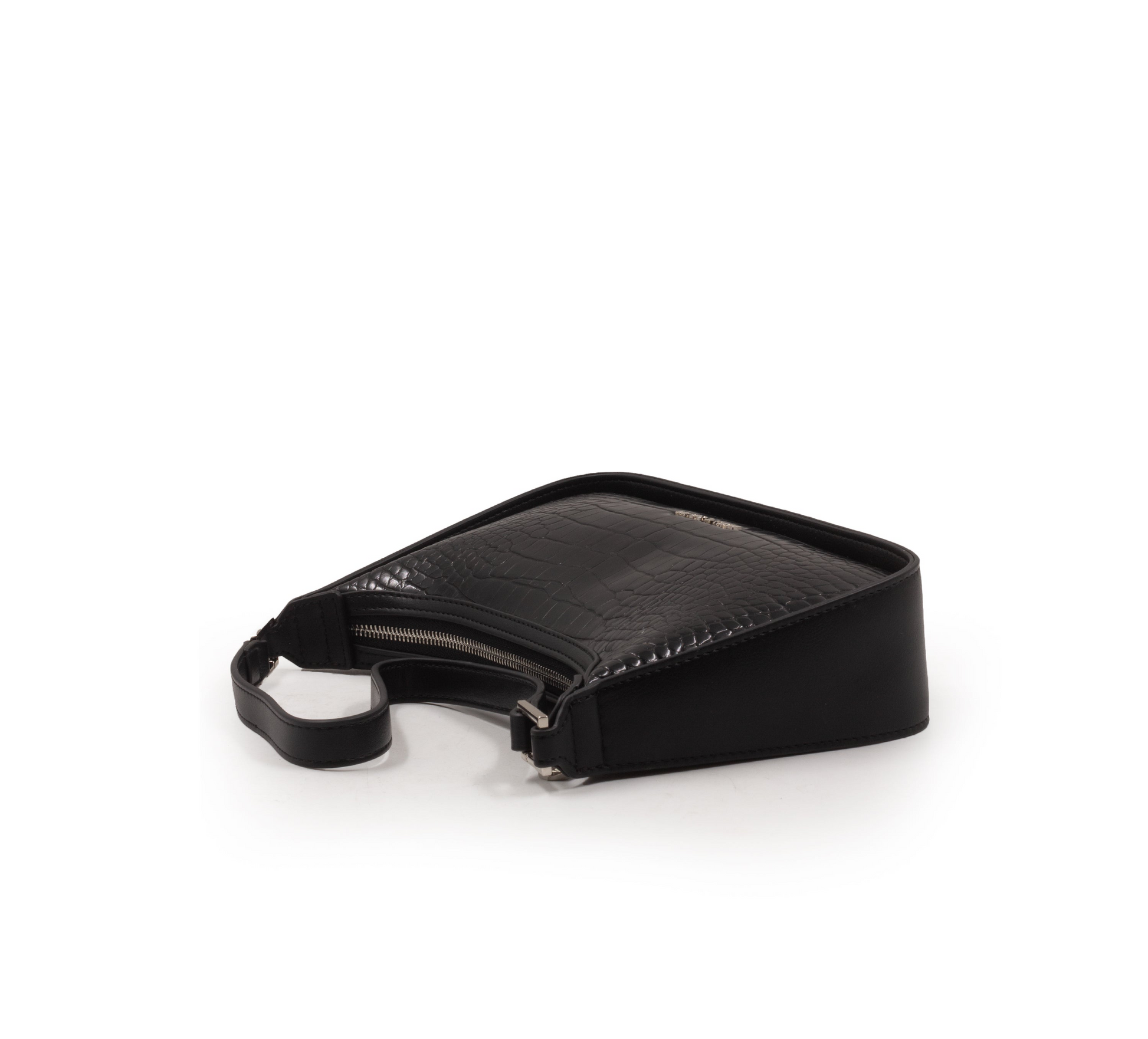 BLACK LEATHER HANDBAG WITH SMOOTH CROC DETAILS-SMALL