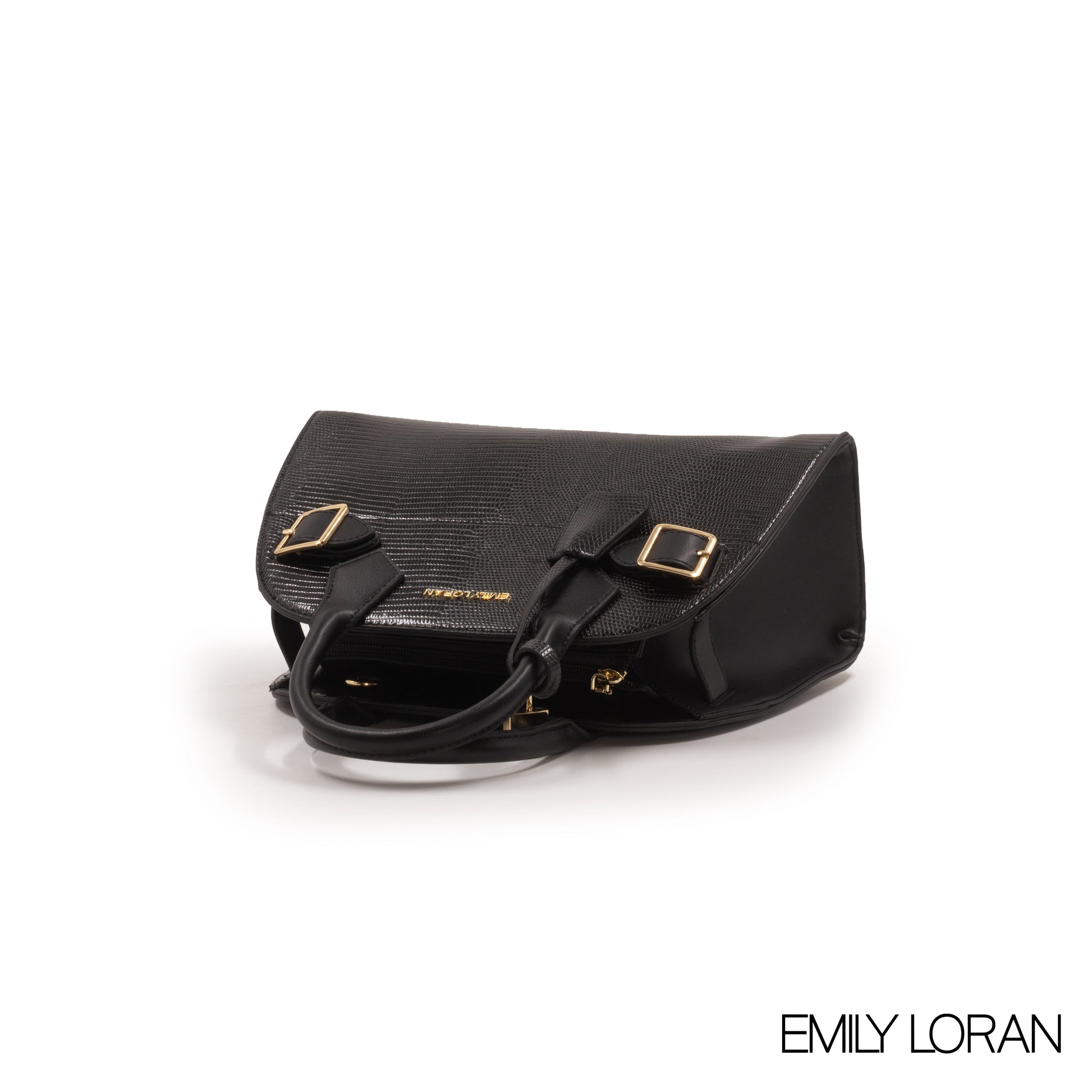 BLACK SNAKE LEATHER HANDBAG WITH GOLD LOCK DETAIL-MED