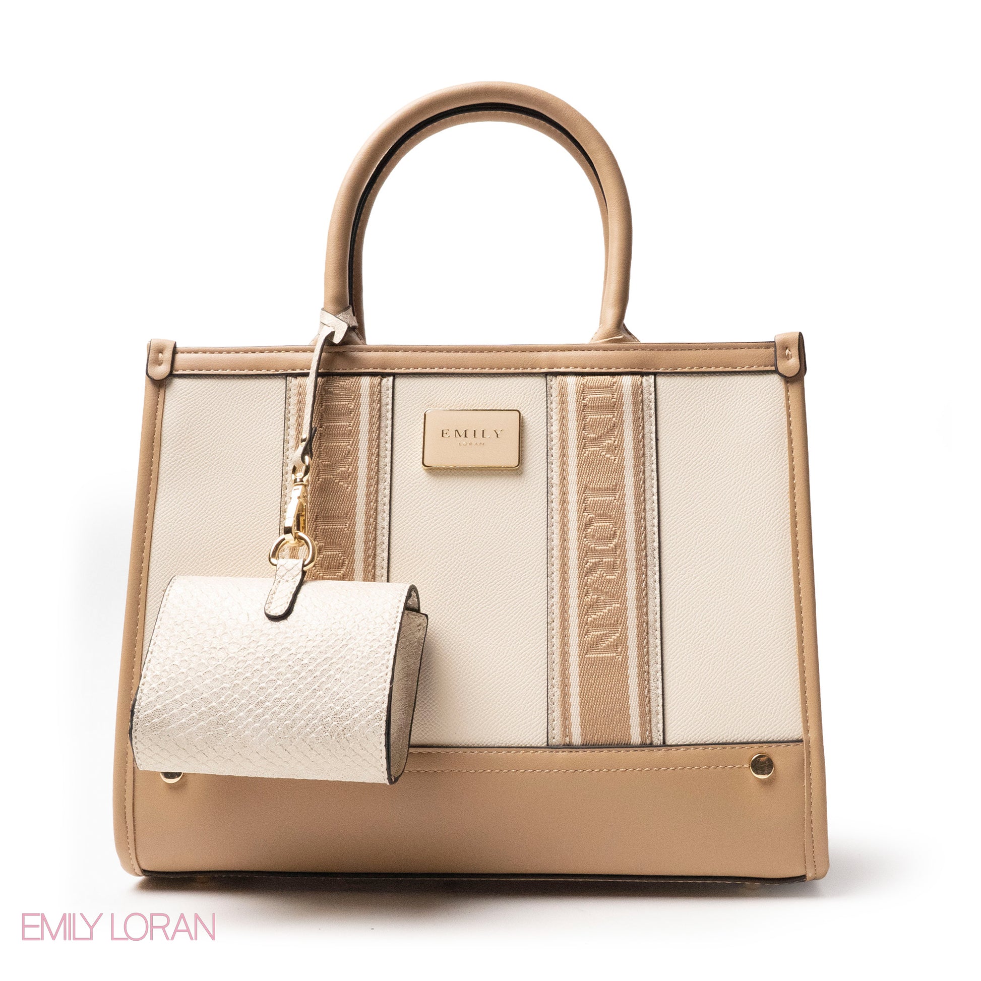 EMILY LORAN HANDBAG WITH FABRIC ACCENTS- MED