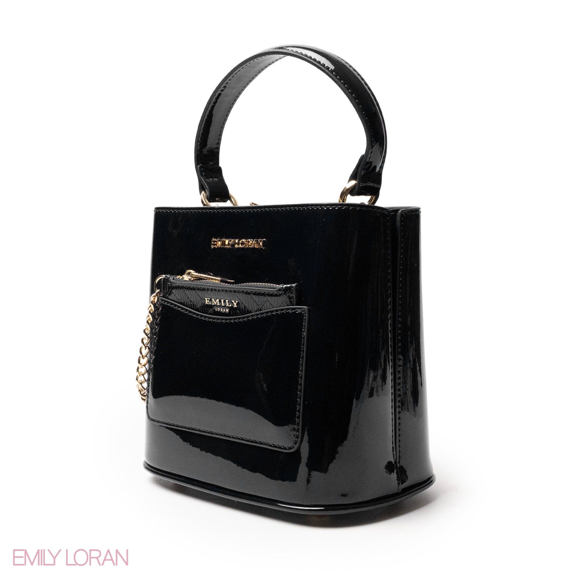 GLOSSY LEATHER HANDBAG WITH METAL CHAIN,MINI WALLET