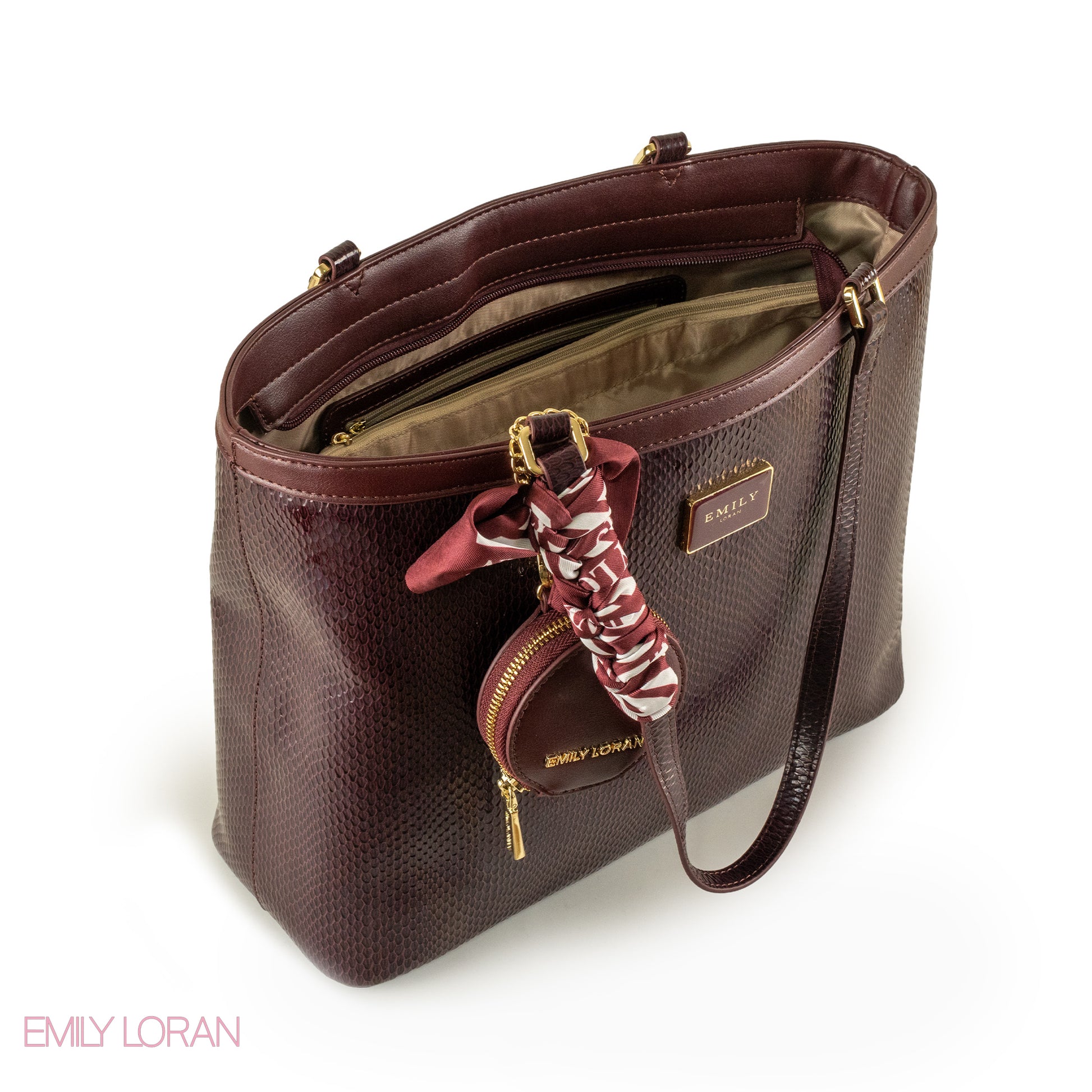 GLOSSY SNAKE LEATHER SHOULDER BAG WITH SCARF - LARGE