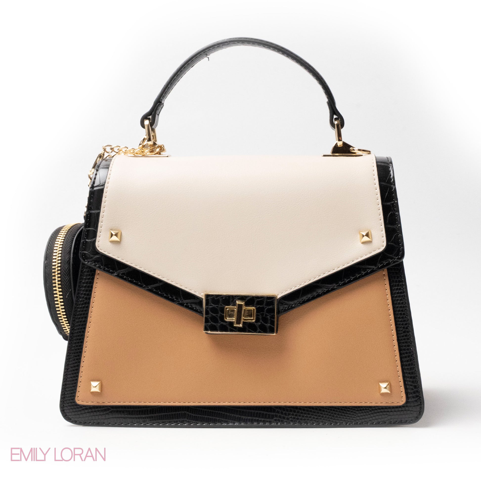 MIXED-COLOR LEATHER HANDBAG WITH FLAP - MED