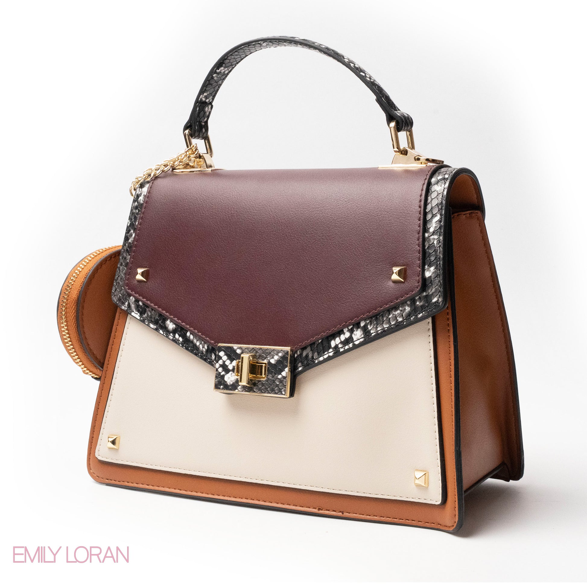 MIXED-COLOR LEATHER HANDBAG WITH FLAP - MED
