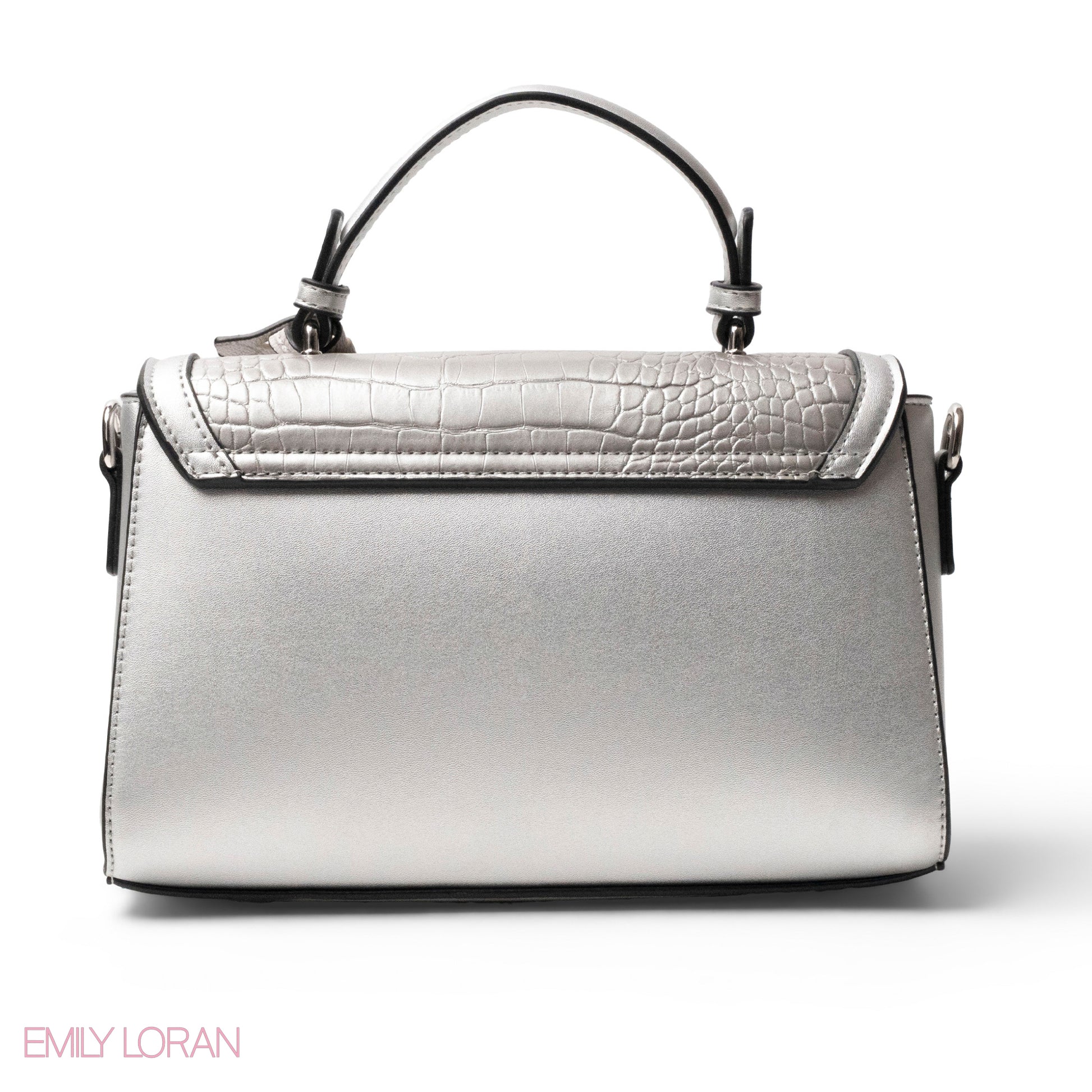 SILVER LEATHER HANDBAG WITH CROC,BUTTERFLIES DETAILS-MED