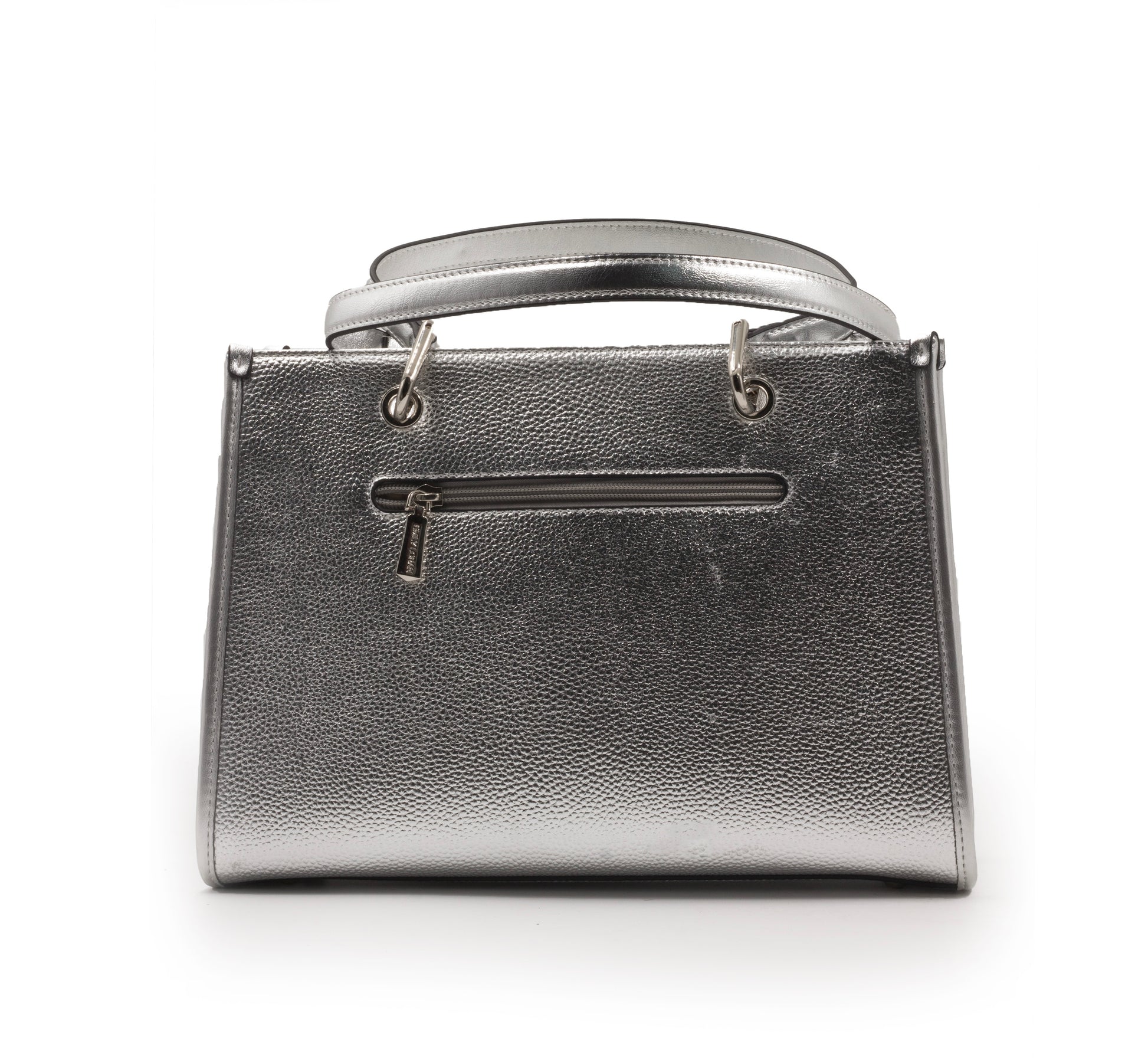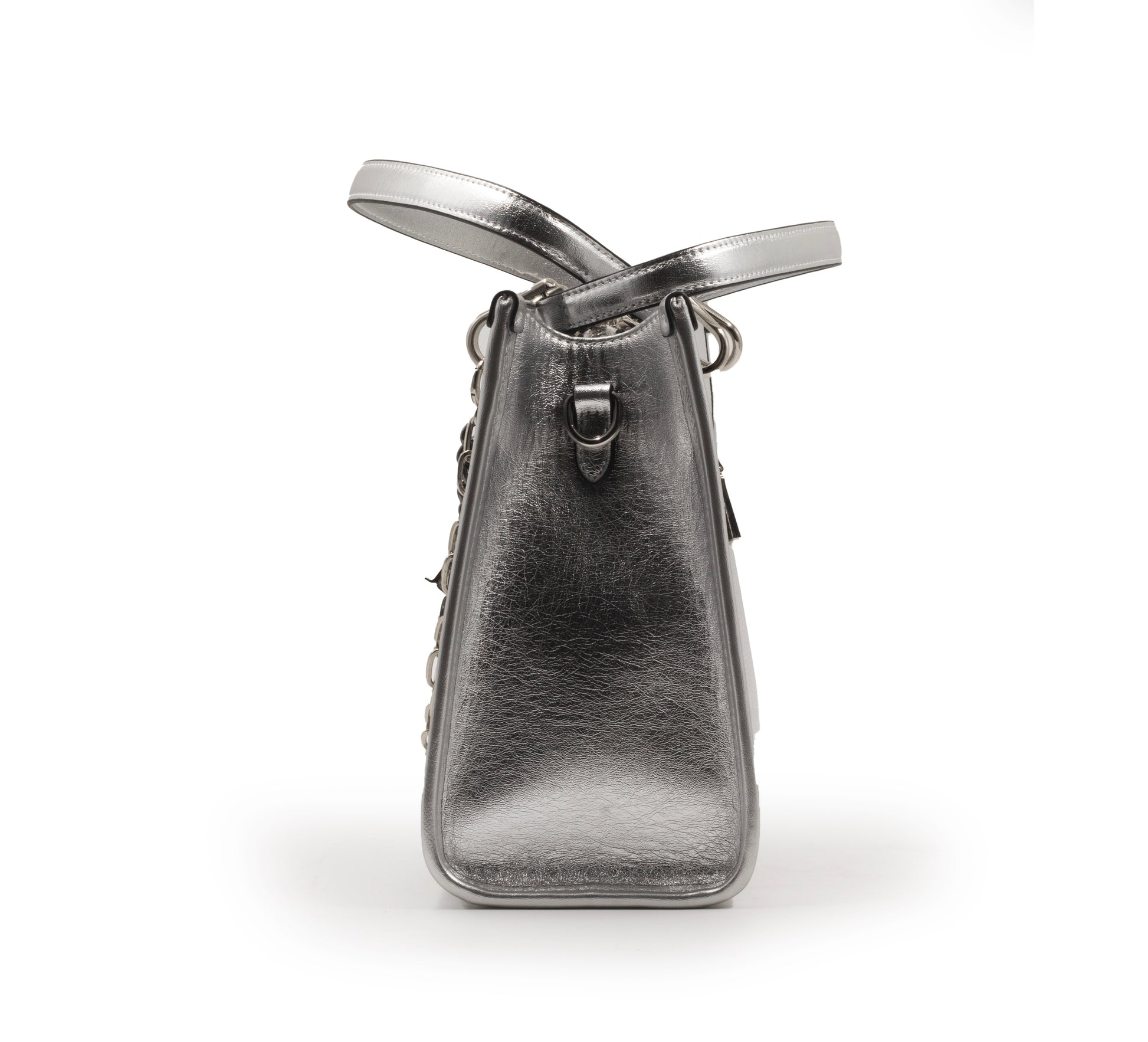 SILVER SHINY LEATHER HANDBAG WITH METAL CHAIN-LARGE