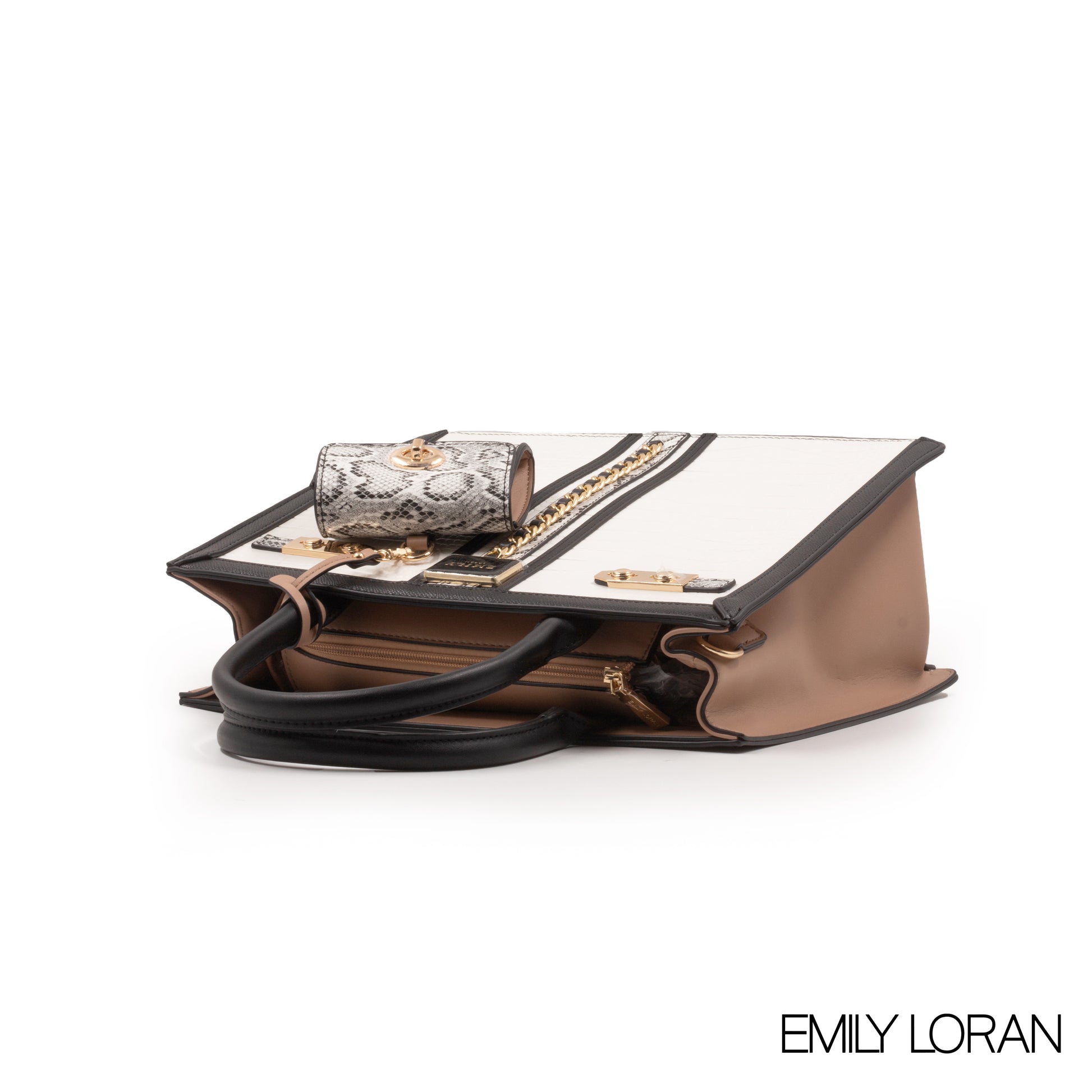 WHITE CROC LEATHER HANDBAG WITH MINI WALLET -LARGE