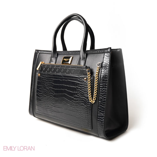 BLACK HANDBAG WITH CROCODILE PRINT - LARGE