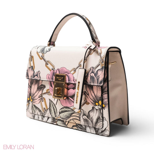 FLORAL PRINTED LEATHER HANDBAG WITH FLAP- MED