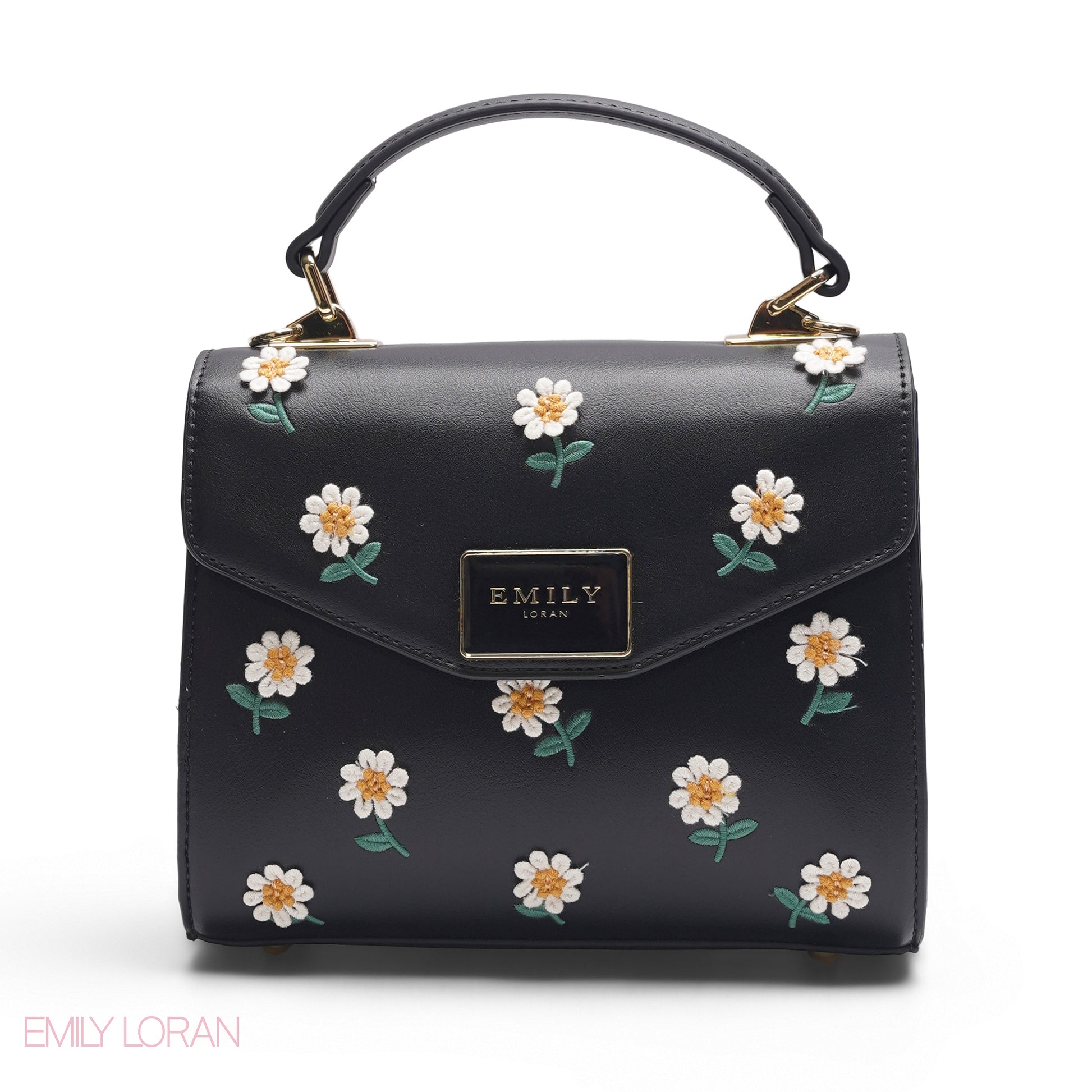 BLACK DAISY EMBROIDERED SATCHEL BAG